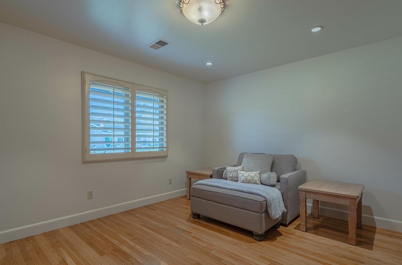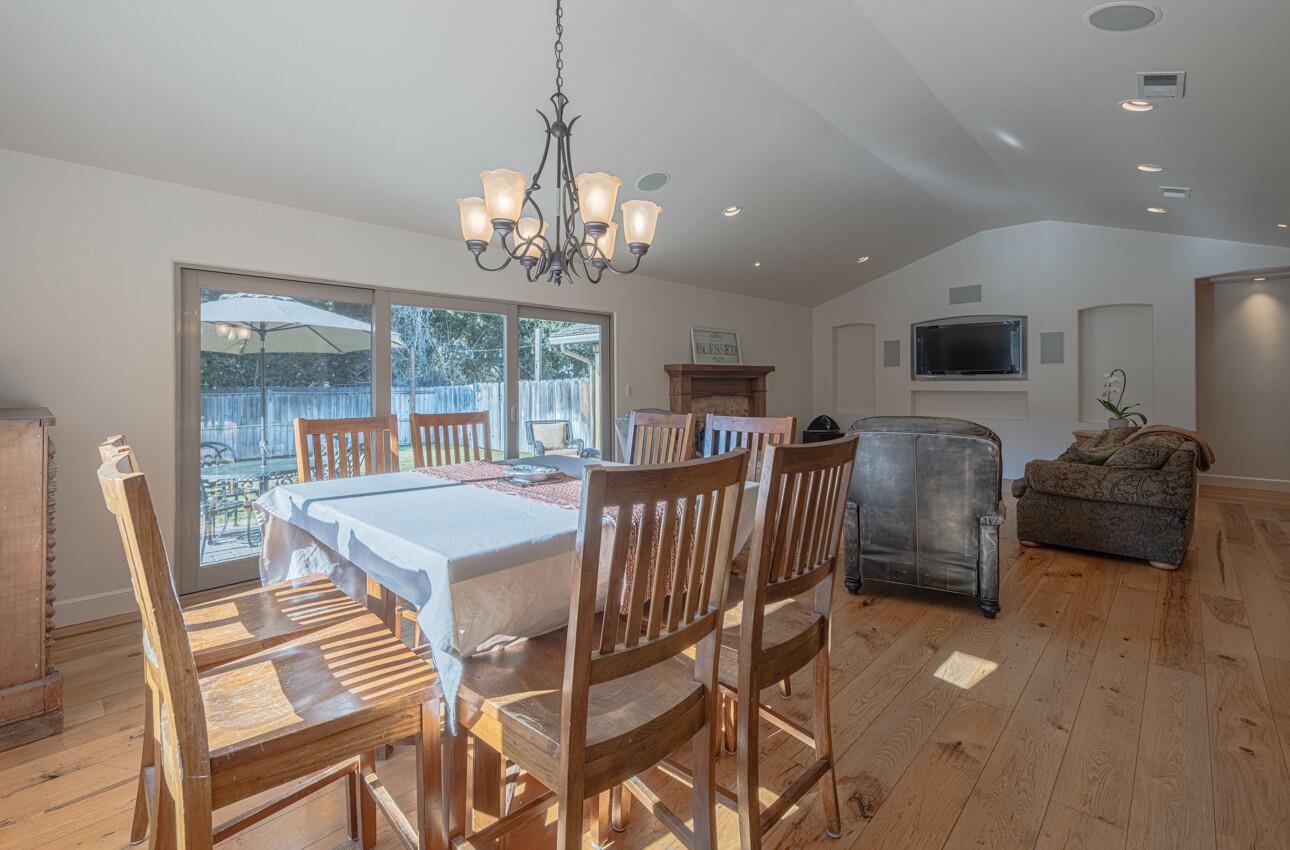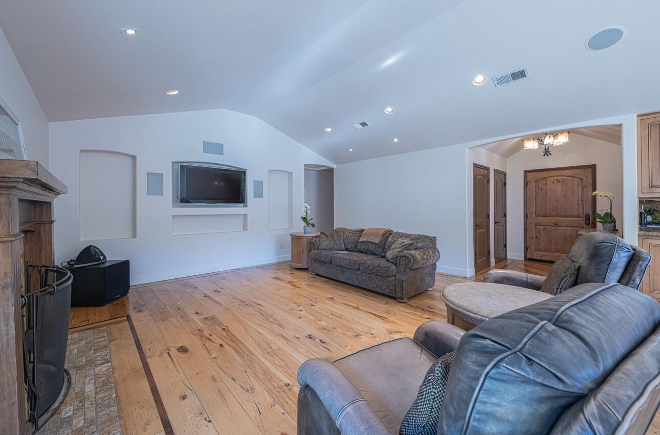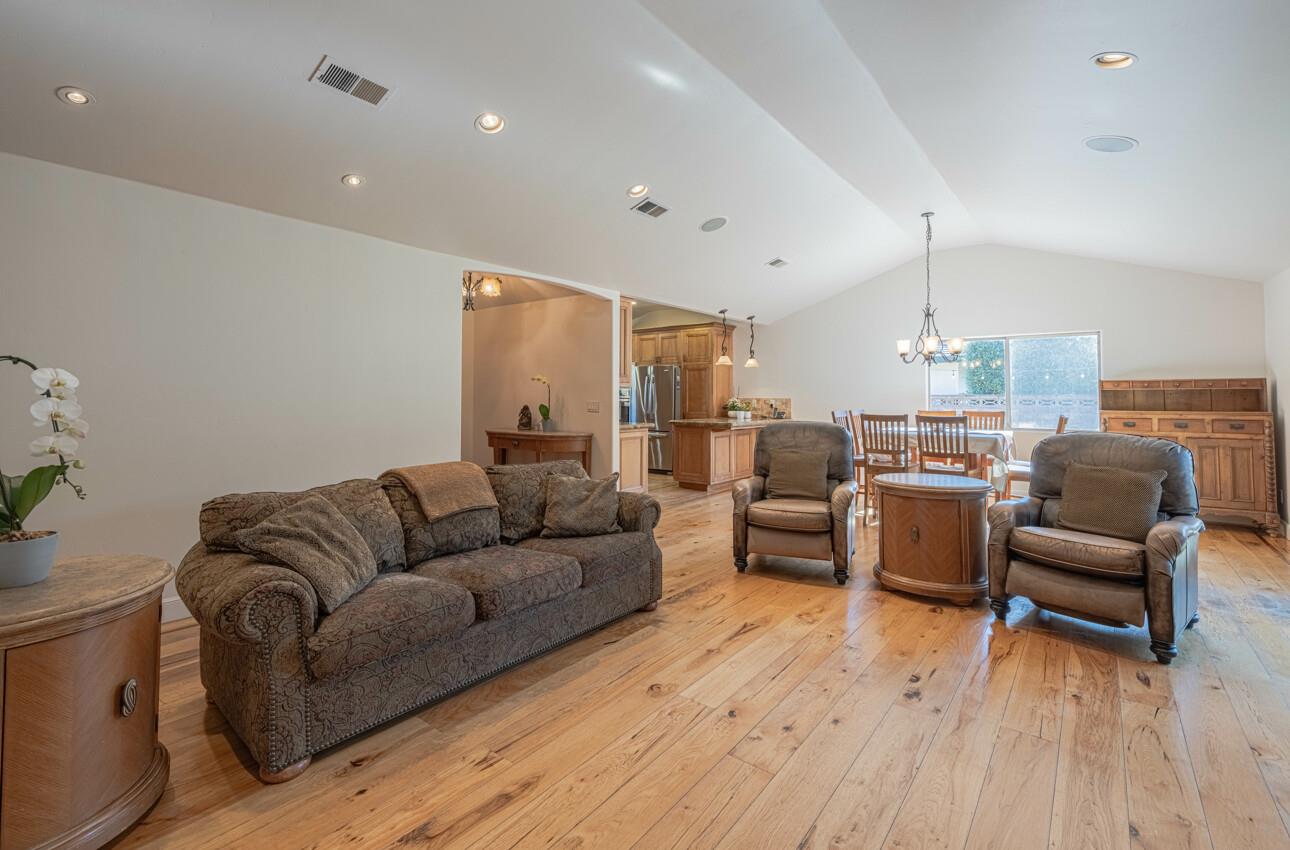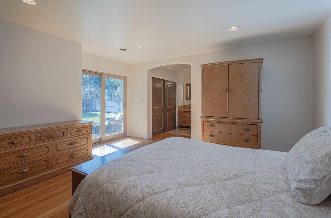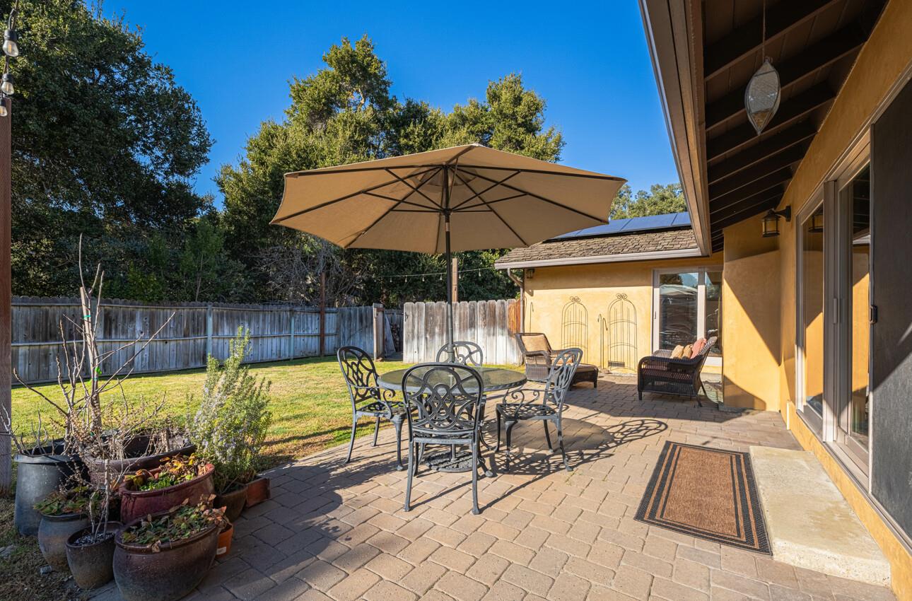 This charming single-level home features 4 bedrooms and 2 bathrooms, with a spacious 1,890 sq. ft. of living space. Set on a premium 9,891 sq. ft. lot adjacent to the former Fort Ord, 22590 Veronica Drive offers easy access to walking, biking, and hiking trails in the sunny Toro Park Estates neighborhood just outside the City of Salinas. The gorgeous kitchen is a chef's dream, complete with custom cabinetry, stone countertops, and stainless steel appliances, including a built-in double oven and a 5-burner gas stovetop. The open floor plan includes a spacious great room, equipped with professionally installed surround sound, a gas fireplace, and a vaulted ceiling, creating a warm and inviting atmosphere. The home features beautiful hardwood flooring throughout, and the interior was freshly painted. Both bathrooms showcase stunning natural stone finishes and vaulted ceilings, with the primary bathroom offering a walk-in shower with dual shower heads and a magnificent cast iron tub. Energy efficiency is boosted with solar panels, and the inviting backyard includes additional storage space on the side, ideal for outdoor activities. Experience the perfect blend of comfort and style in this thoughtfully designed home.