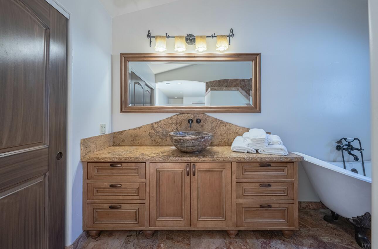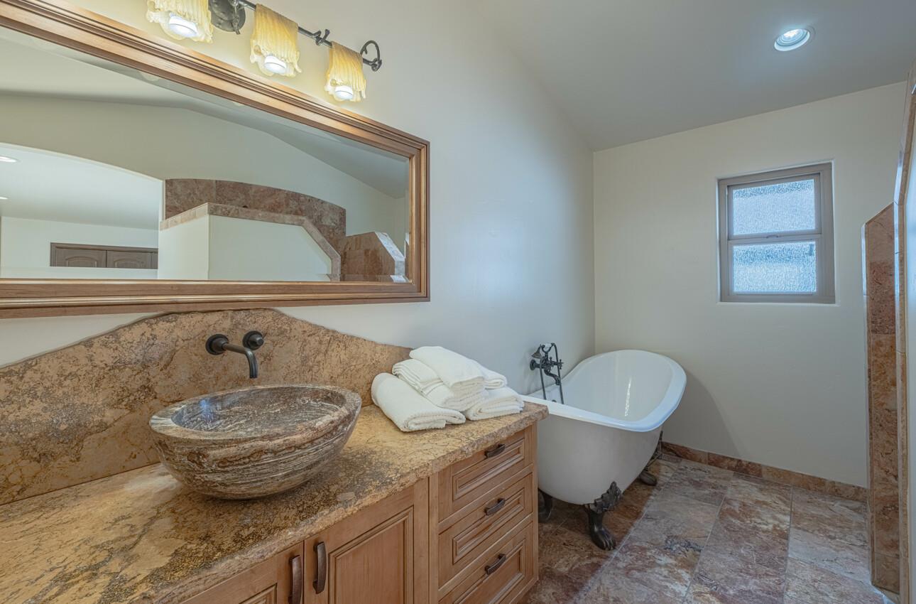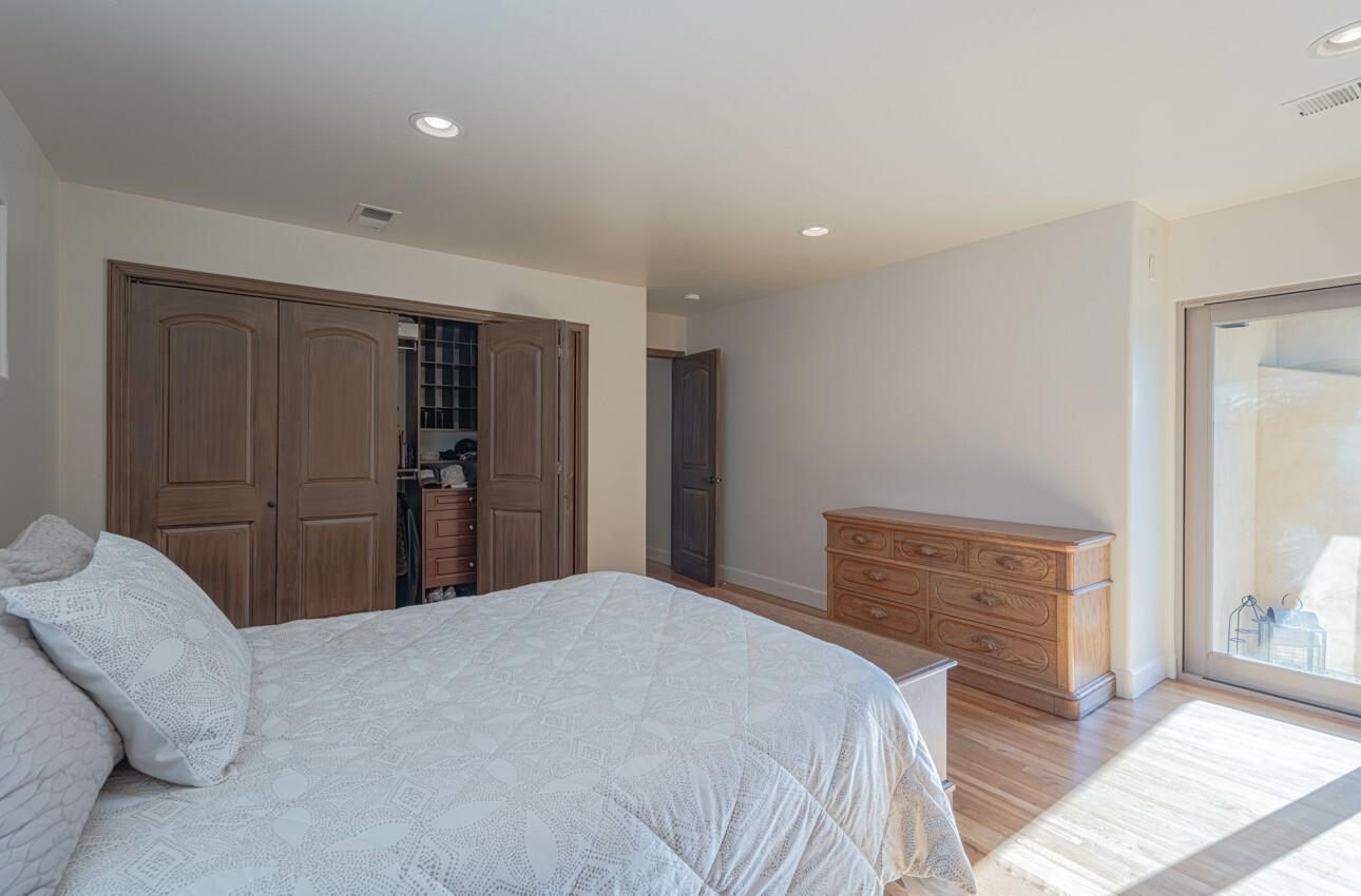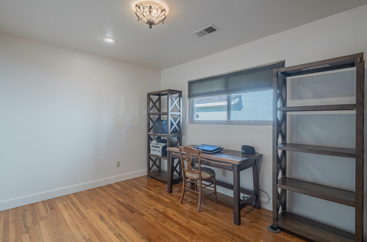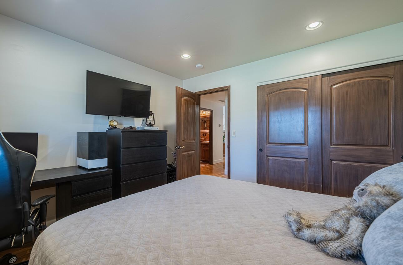 This charming single-level home features 4 bedrooms and 2 bathrooms, with a spacious 1,890 sq. ft. of living space. Set on a premium 9,891 sq. ft. lot adjacent to the former Fort Ord, 22590 Veronica Drive offers easy access to walking, biking, and hiking trails in the sunny Toro Park Estates neighborhood just outside the City of Salinas. The gorgeous kitchen is a chef's dream, complete with custom cabinetry, stone countertops, and stainless steel appliances, including a built-in double oven and a 5-burner gas stovetop. The open floor plan includes a spacious great room, equipped with professionally installed surround sound, a gas fireplace, and a vaulted ceiling, creating a warm and inviting atmosphere. The home features beautiful hardwood flooring throughout, and the interior was freshly painted. Both bathrooms showcase stunning natural stone finishes and vaulted ceilings, with the primary bathroom offering a walk-in shower with dual shower heads and a magnificent cast iron tub. Energy efficiency is boosted with solar panels, and the inviting backyard includes additional storage space on the side, ideal for outdoor activities. Experience the perfect blend of comfort and style in this thoughtfully designed home.