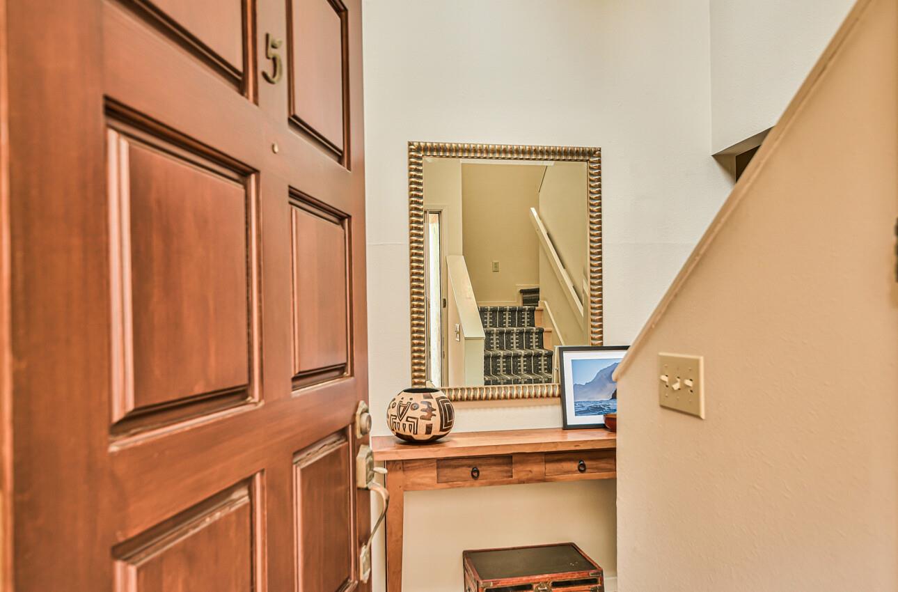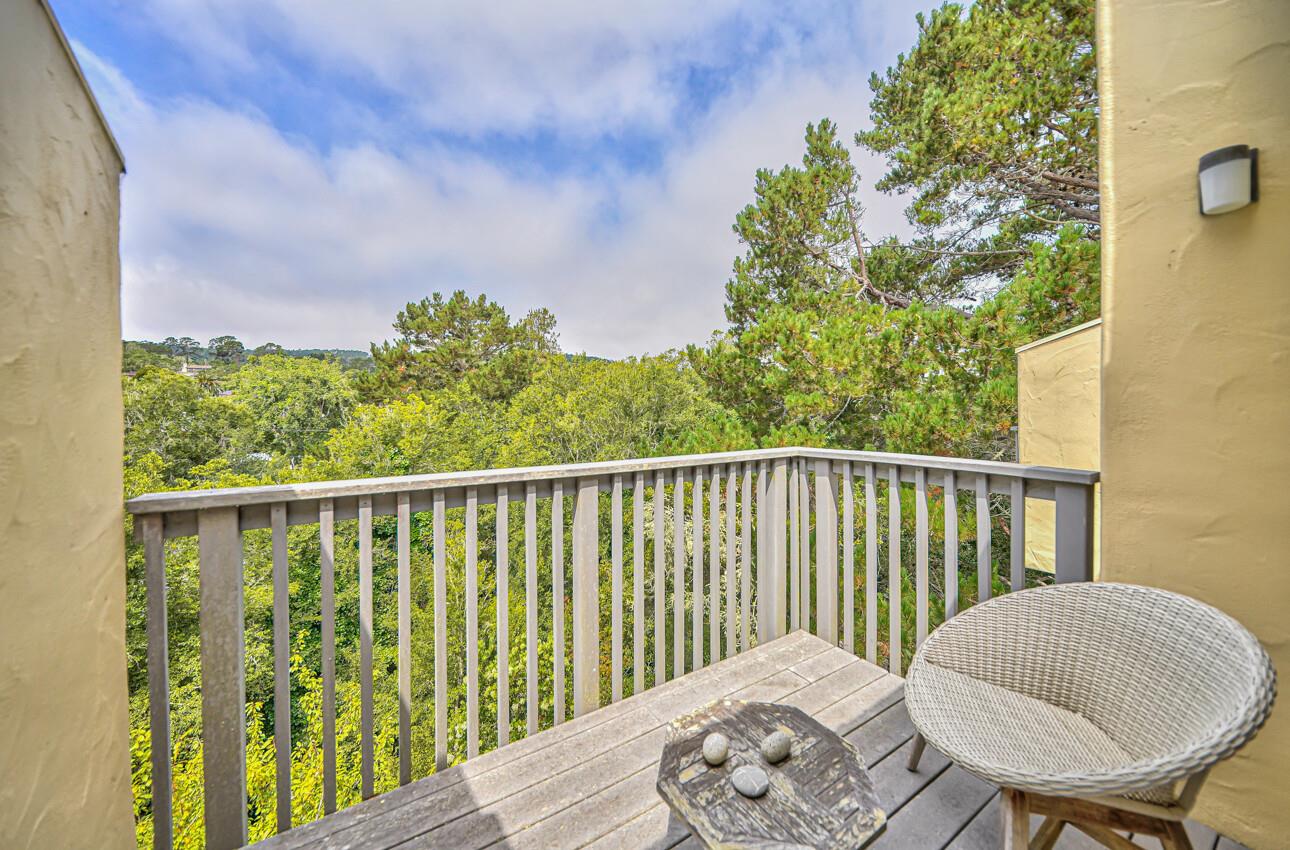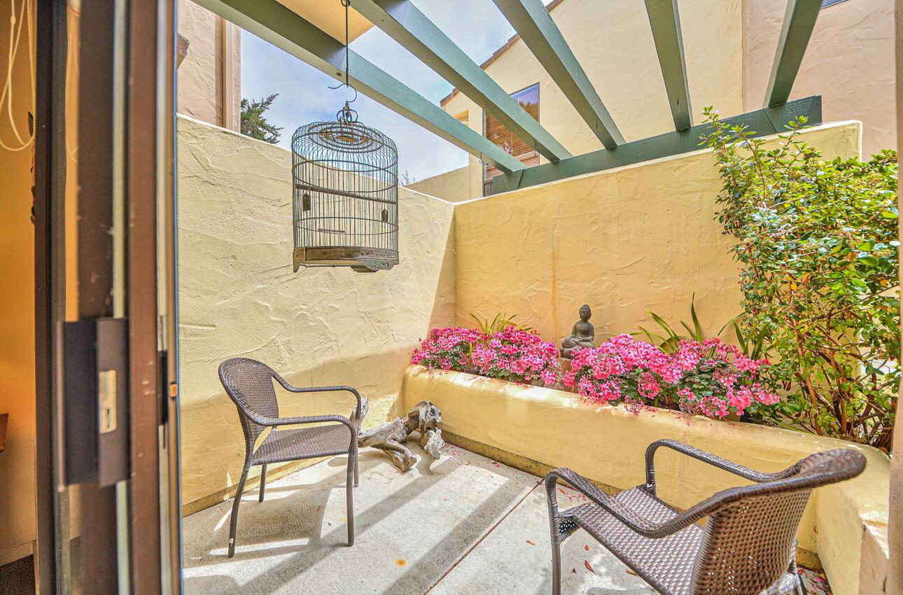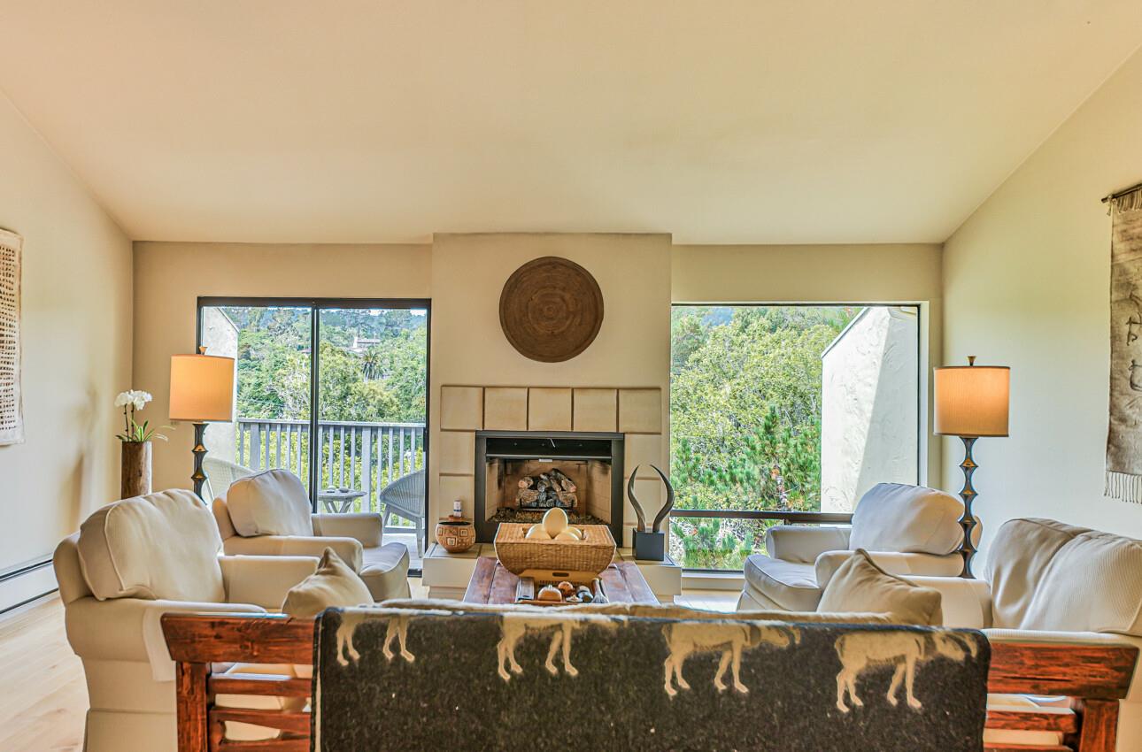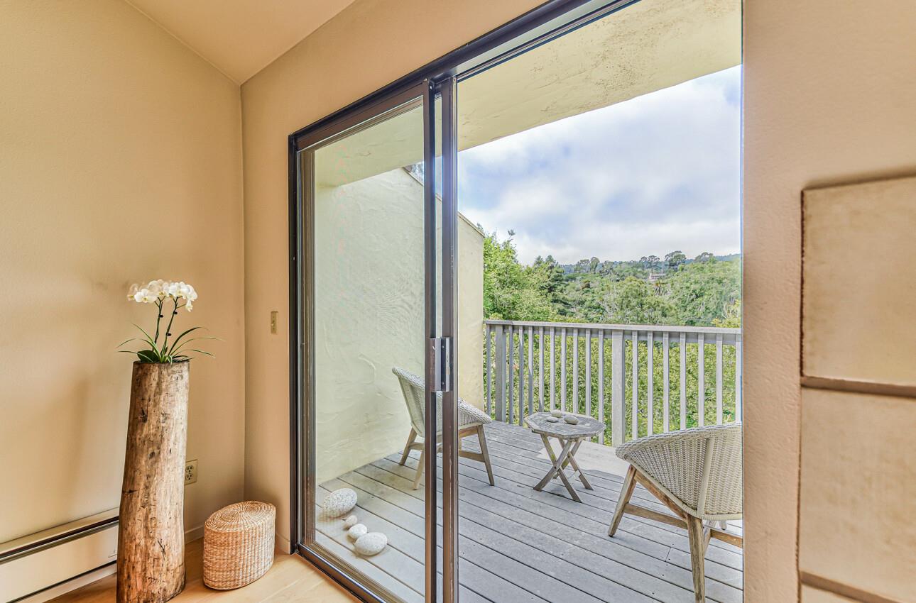 Welcome to 7 Via Joaquin, Unit 5, nestled in Monterey, CA at the sought-after Villa Via Joaquin condominium complex. This exquisite 2-bedroom, 2.5-bathroom unit spans 1591 square feet and has been beautifully renovated with impeccable taste and attention to detail. The unit offers complete privacy and unobstructed greenbelt views, creating a serene treehouse-like ambiance. Upon entering, you'll find gorgeous blonde hardwood flooring. The primary bedroom features a stunning renovated bath with beautiful quartz countertops, a large shower, and radiant heated flooring. The second bedroom is also en suite and conveniently located on the ground floor for ease and comfort. Upstairs, the well-appointed kitchen boasts a suite of Miele appliances. The living room with its soaring vaulted ceiling is beautifully decorated. Unit 5 includes 2 designated parking spaces in an underground covered parking lot, complete with a security gate and a personal storage room. Conveniently located within walking distance to downtown Monterey, medical facilities, the post office, and more, this home offers ultimate urban convenience. Embrace the allure of Monterey living in this meticulously designed residence and experience the epitome of smart, sophisticated living at 7 Via Joaquin, Unit 5.