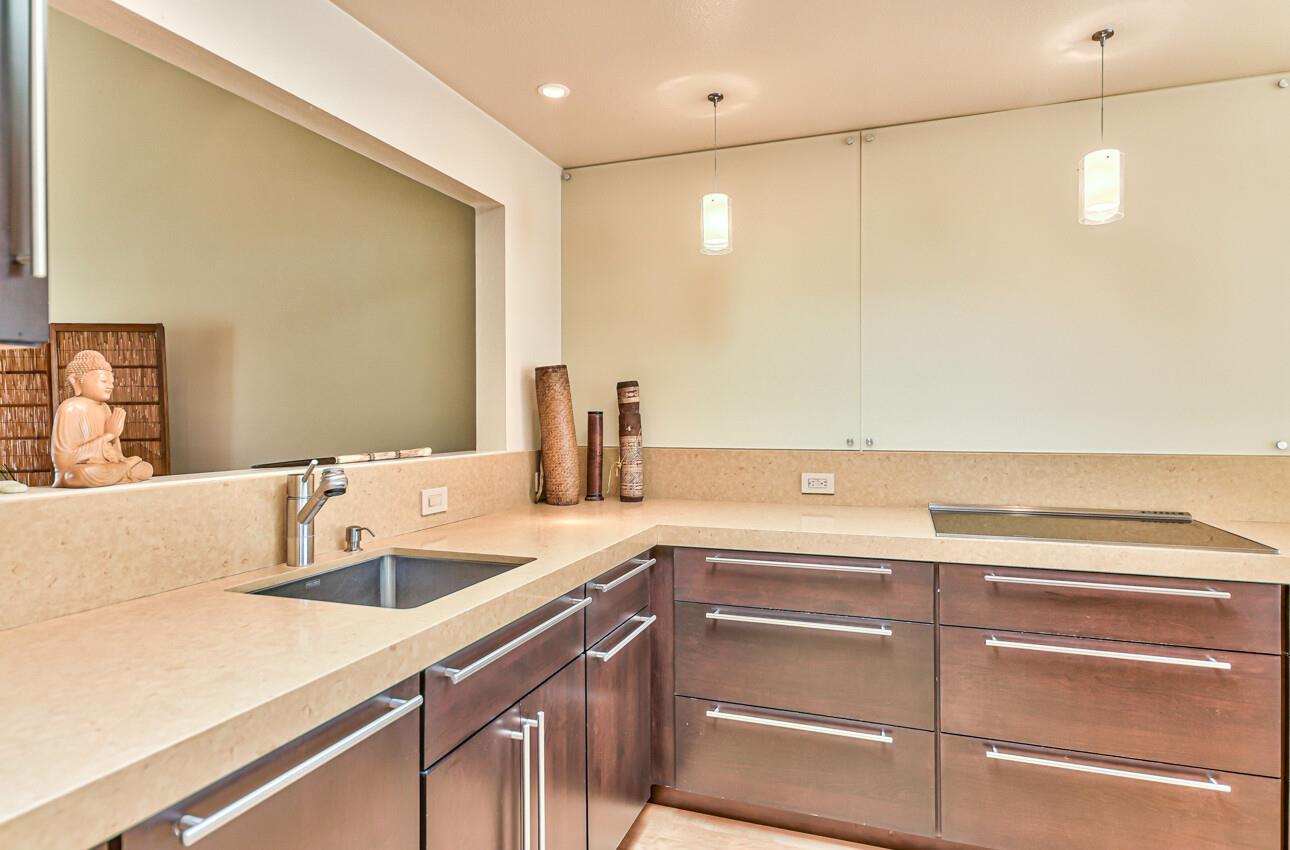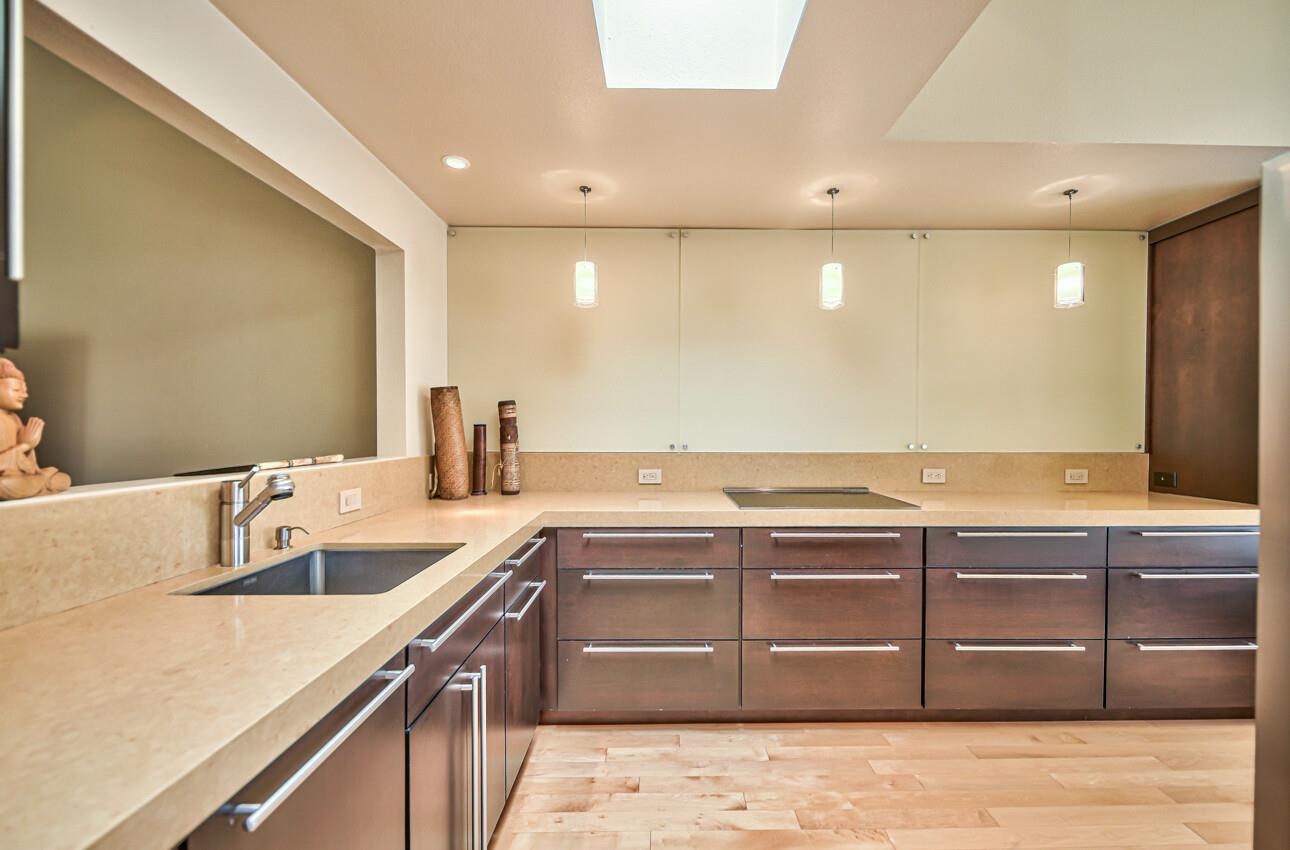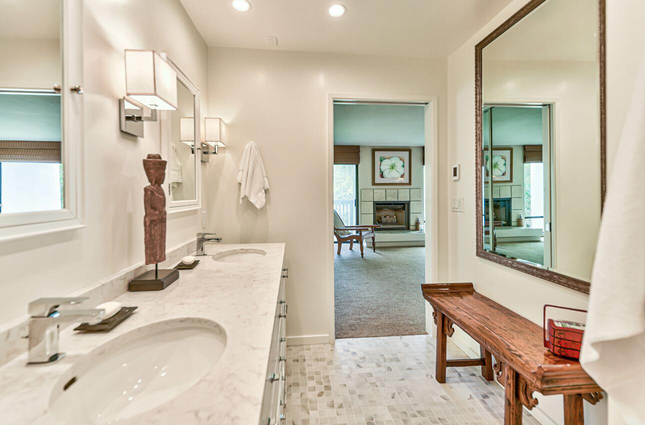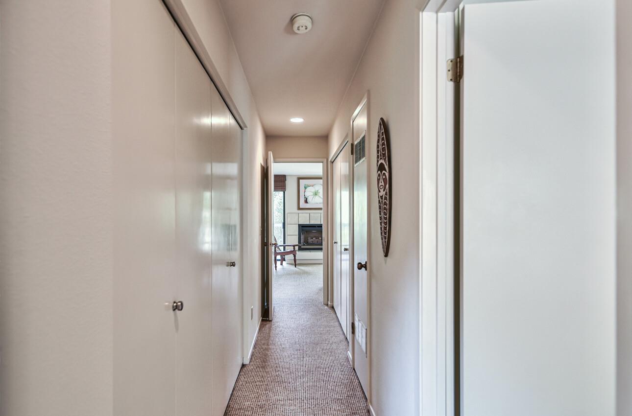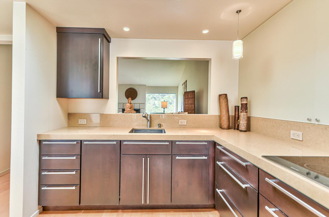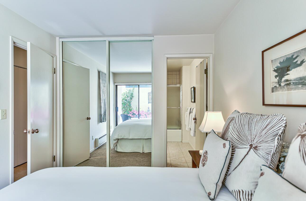 Welcome to 7 Via Joaquin, Unit 5, nestled in Monterey, CA at the sought-after Villa Via Joaquin condominium complex. This exquisite 2-bedroom, 2.5-bathroom unit spans 1591 square feet and has been beautifully renovated with impeccable taste and attention to detail. The unit offers complete privacy and unobstructed greenbelt views, creating a serene treehouse-like ambiance. Upon entering, you'll find gorgeous blonde hardwood flooring. The primary bedroom features a stunning renovated bath with beautiful quartz countertops, a large shower, and radiant heated flooring. The second bedroom is also en suite and conveniently located on the ground floor for ease and comfort. Upstairs, the well-appointed kitchen boasts a suite of Miele appliances. The living room with its soaring vaulted ceiling is beautifully decorated. Unit 5 includes 2 designated parking spaces in an underground covered parking lot, complete with a security gate and a personal storage room. Conveniently located within walking distance to downtown Monterey, medical facilities, the post office, and more, this home offers ultimate urban convenience. Embrace the allure of Monterey living in this meticulously designed residence and experience the epitome of smart, sophisticated living at 7 Via Joaquin, Unit 5.